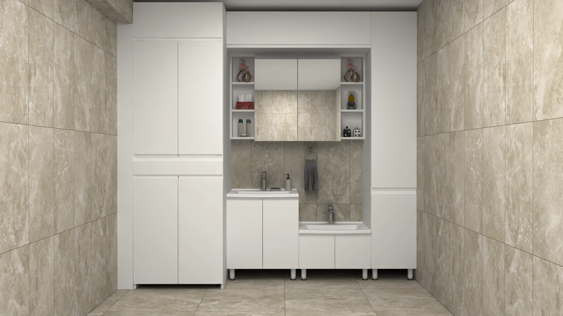 3D Modern Lake Krem Banyo Dolabı