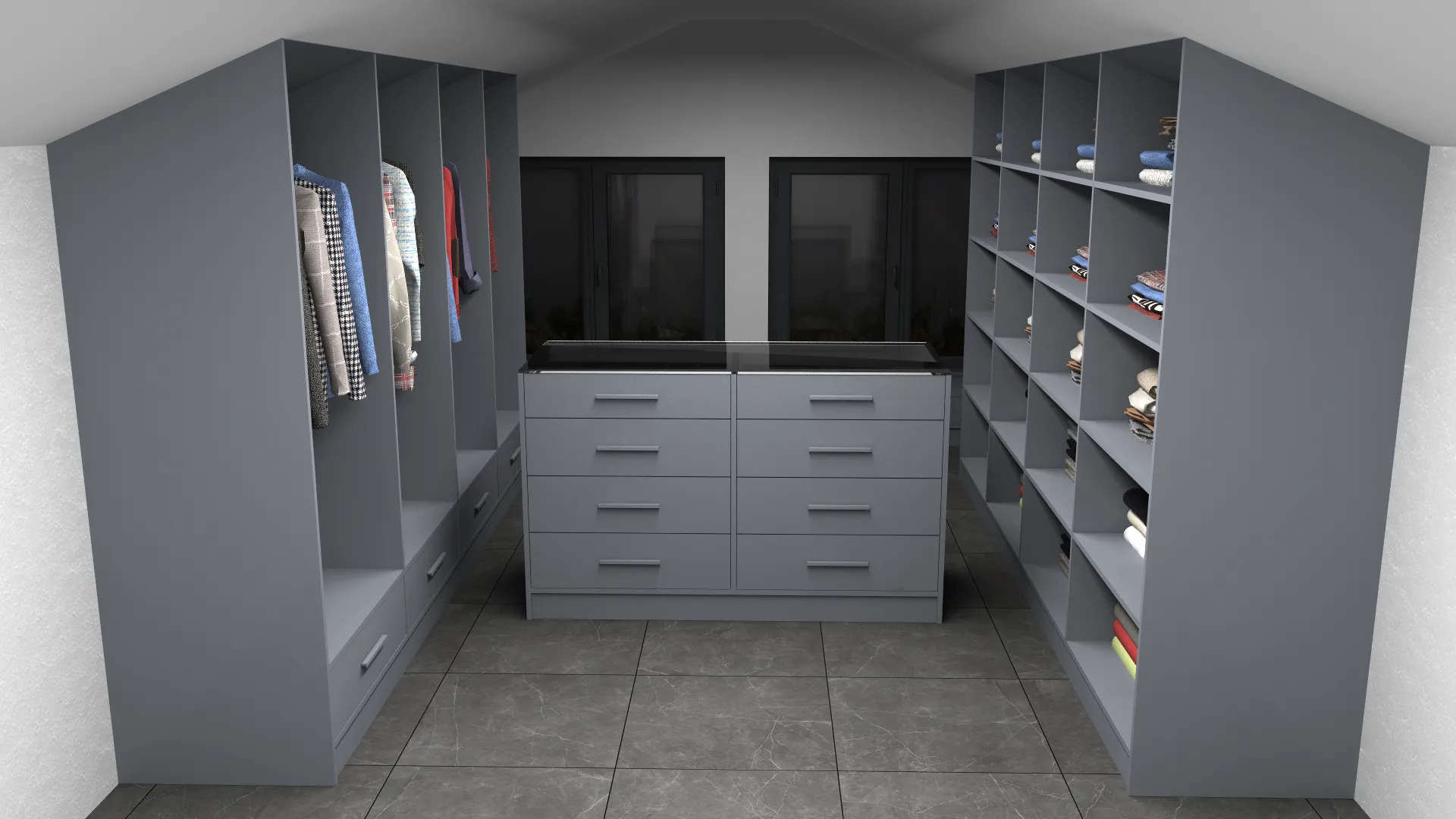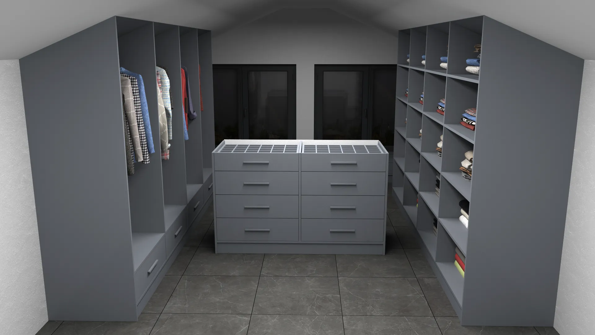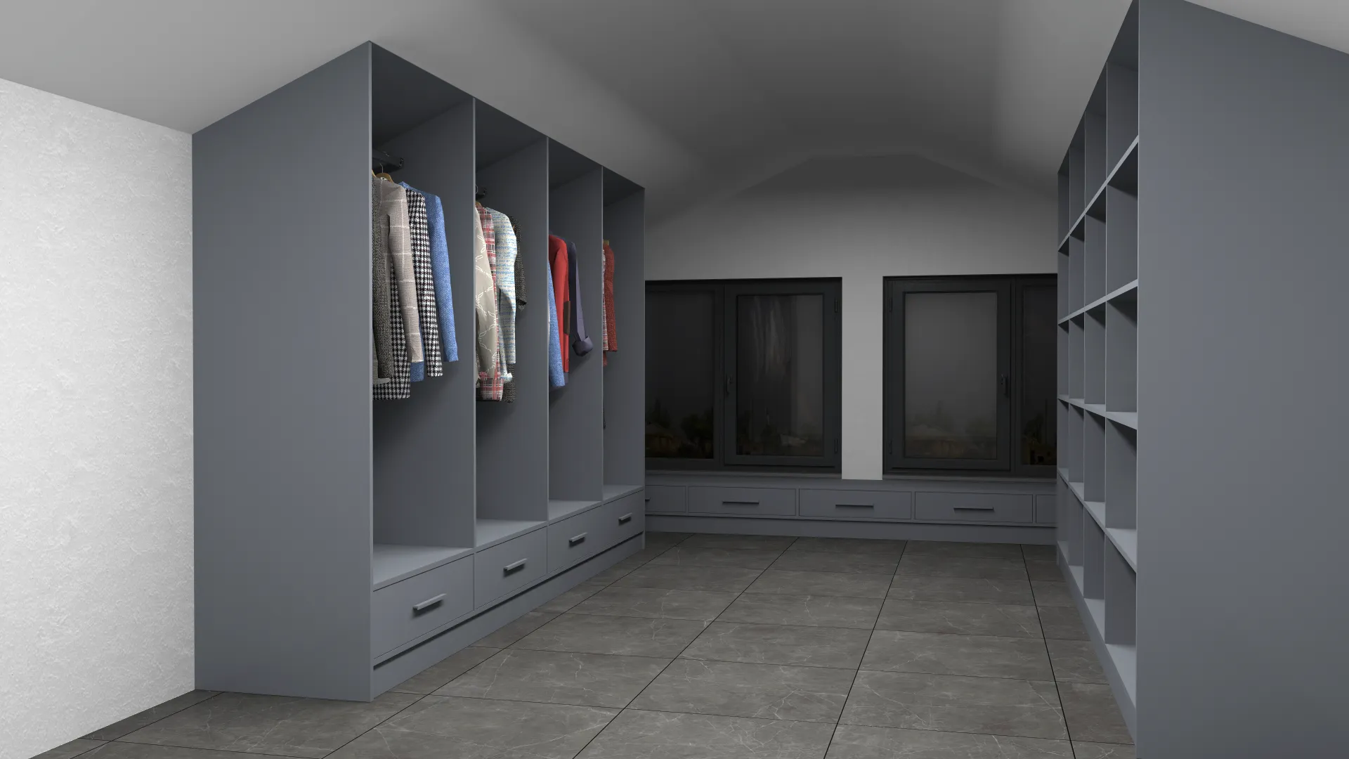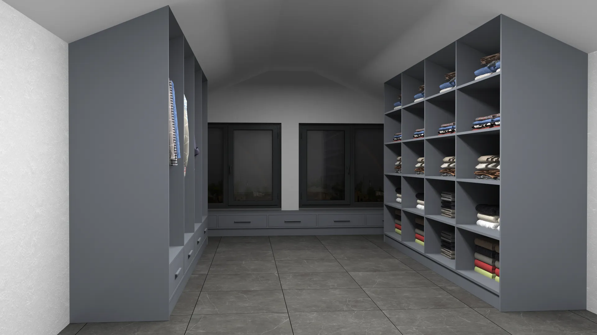 - 3D Modern Mdflam Çatı Katı Elbise Dolabı