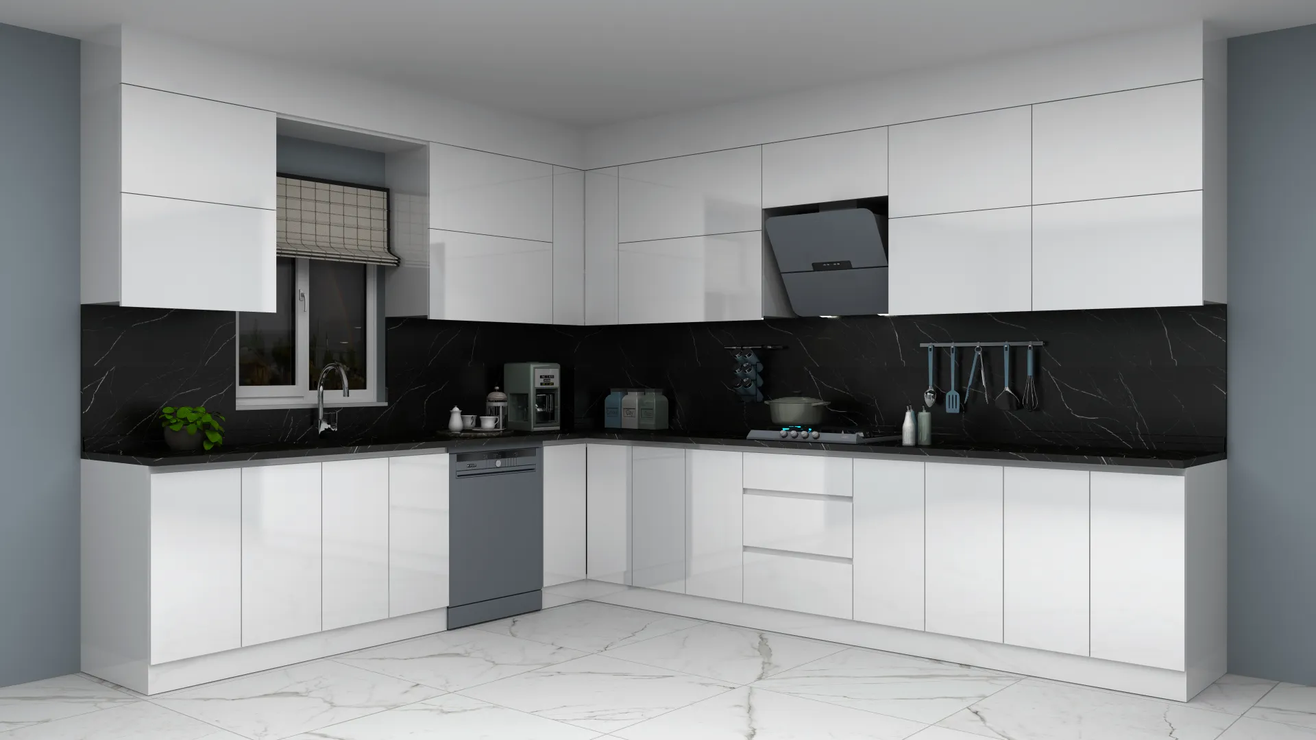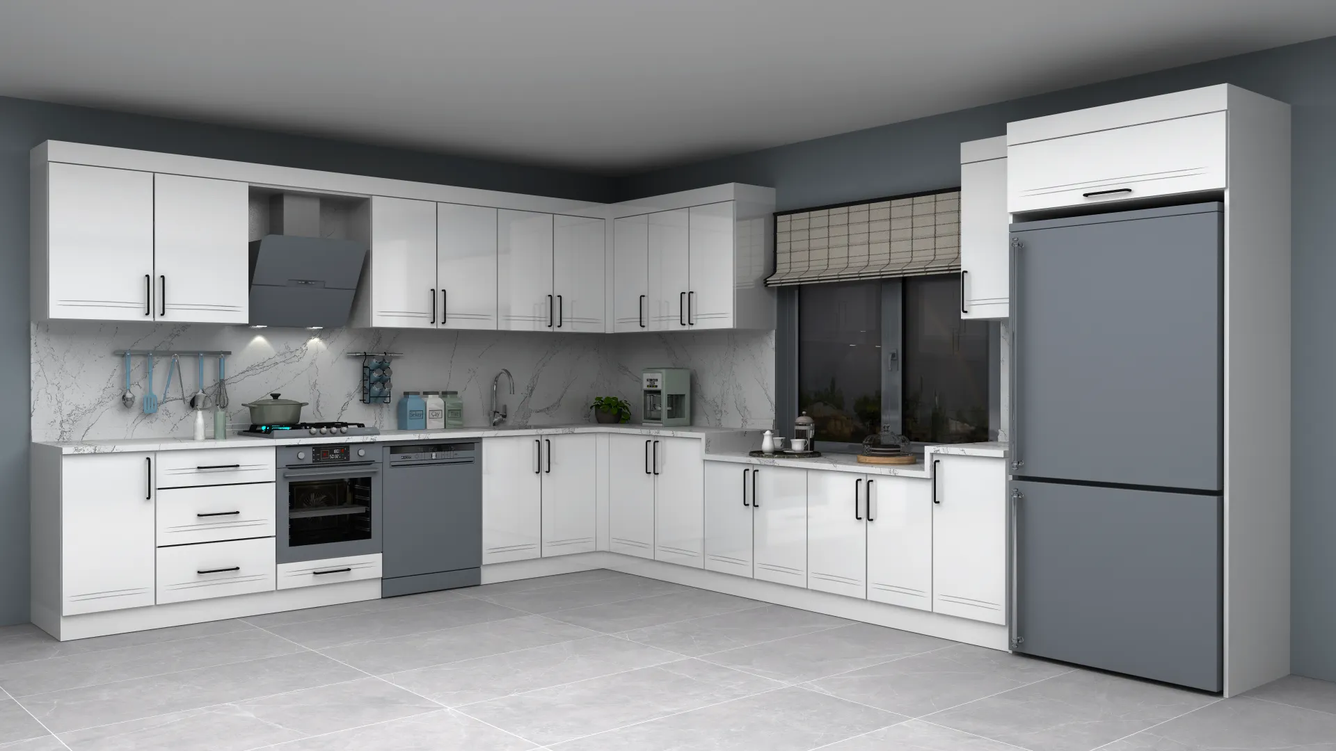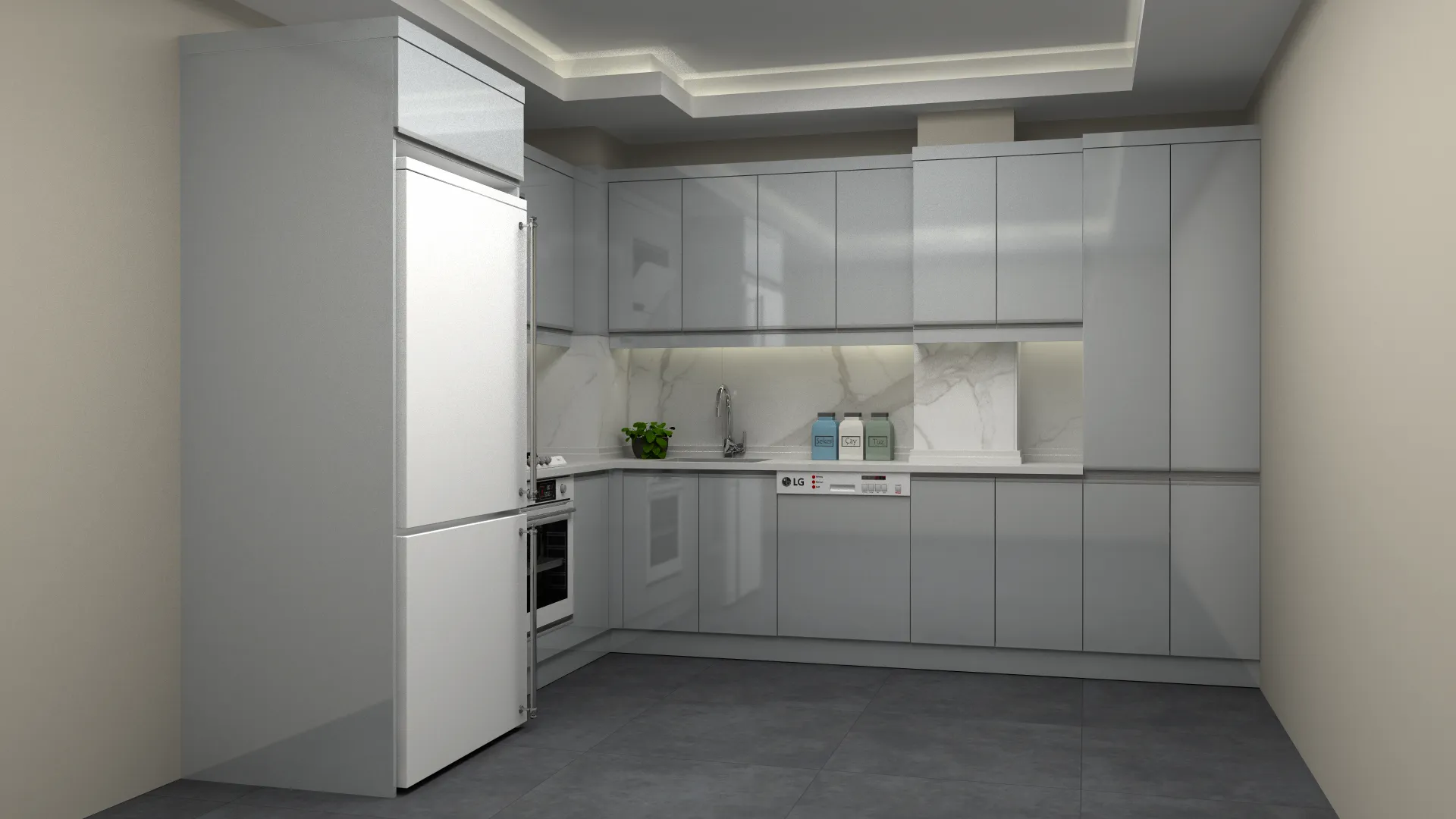 - 3D Modern Akrilik L Mutfak Dolabı
