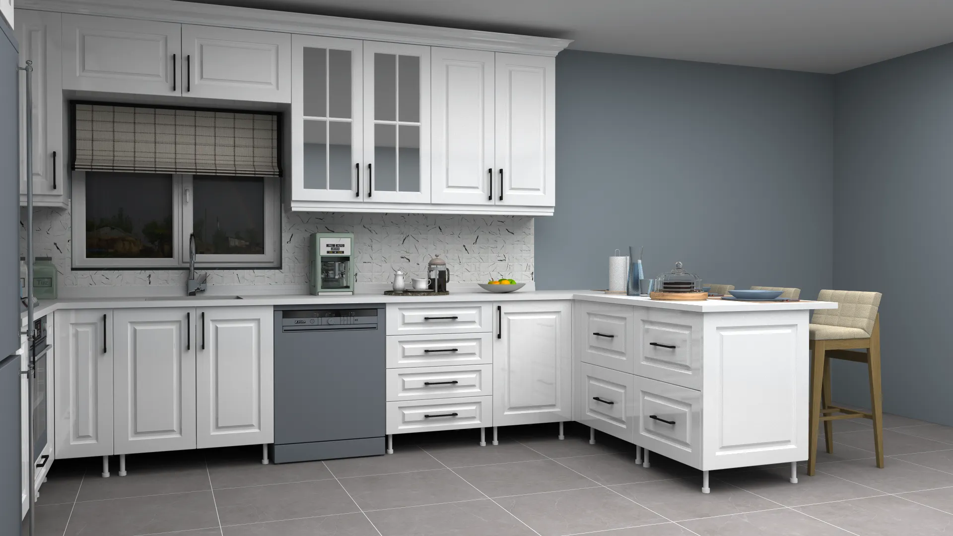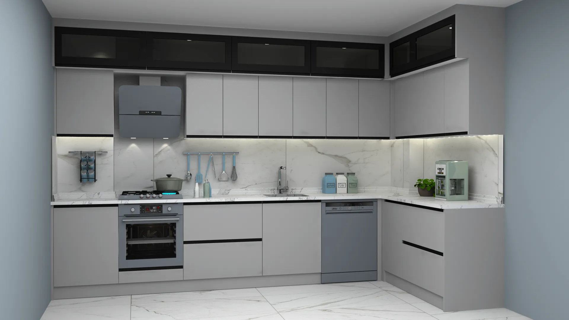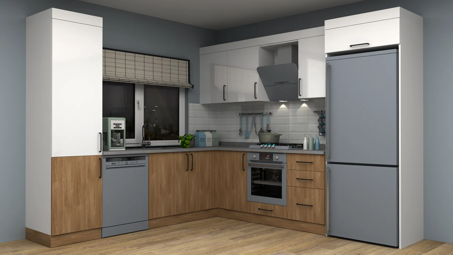 - 3D Modern Lake Adalı L Mutfak Dolabı