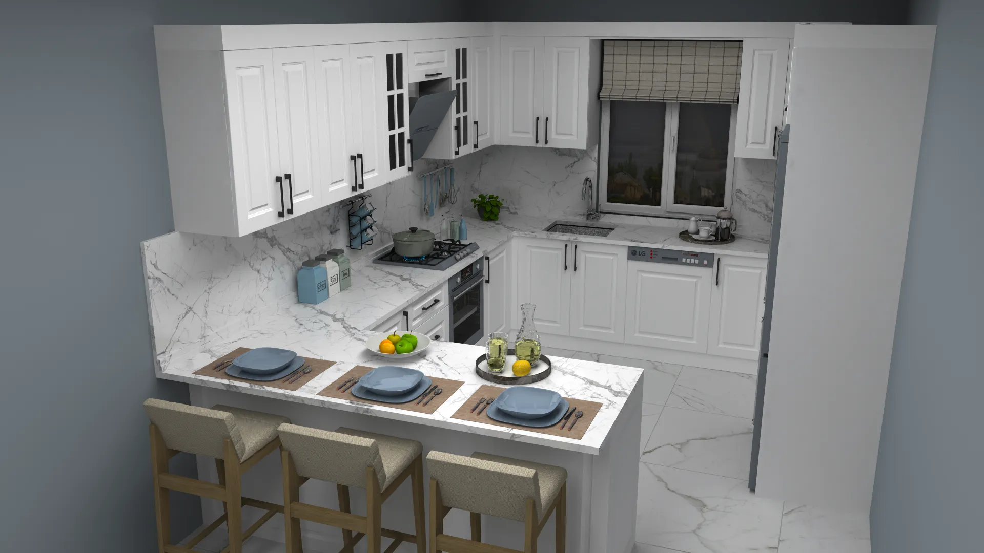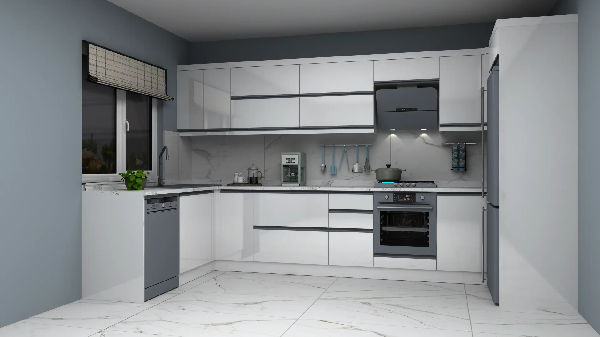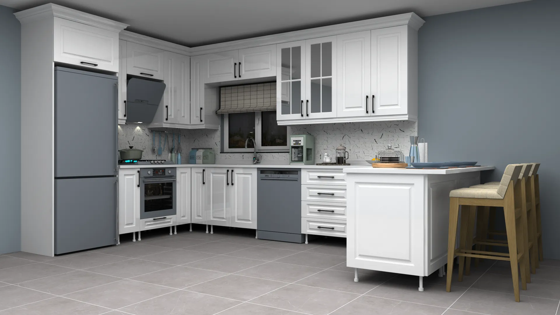 - 3D Modern Lake Adalı L Mutfak Dolabı