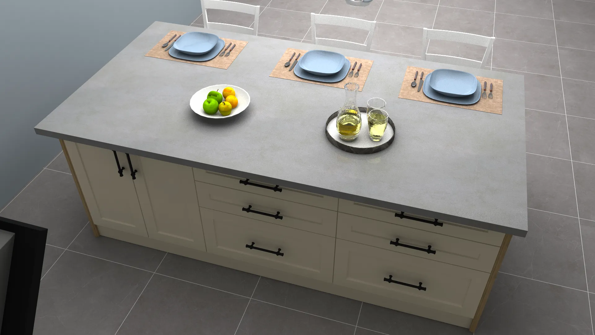 - 3D Country Lake Adalı Mutfak Dolabı