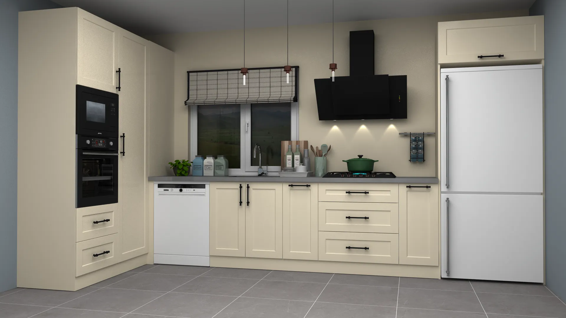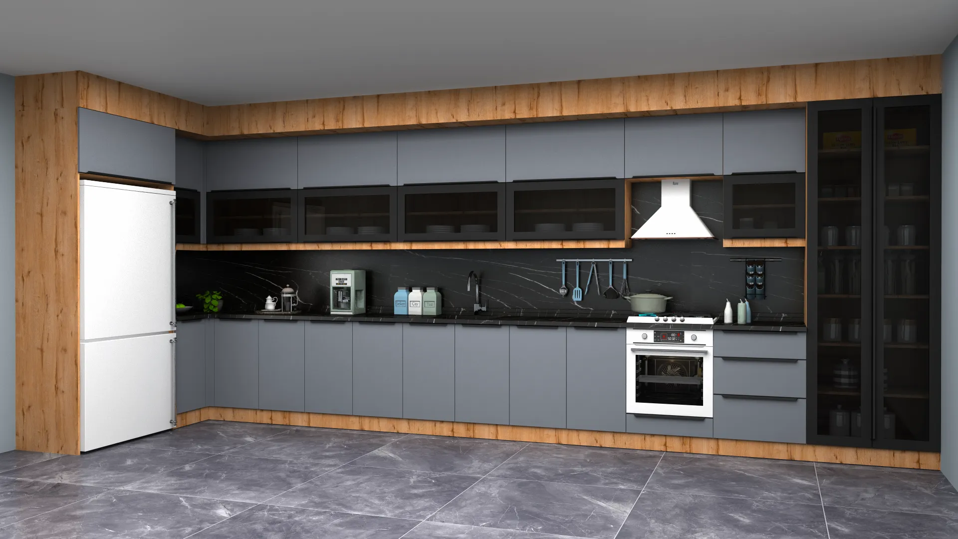 - 3D Country Lake Çift Katlı L Mutfak Dolabı