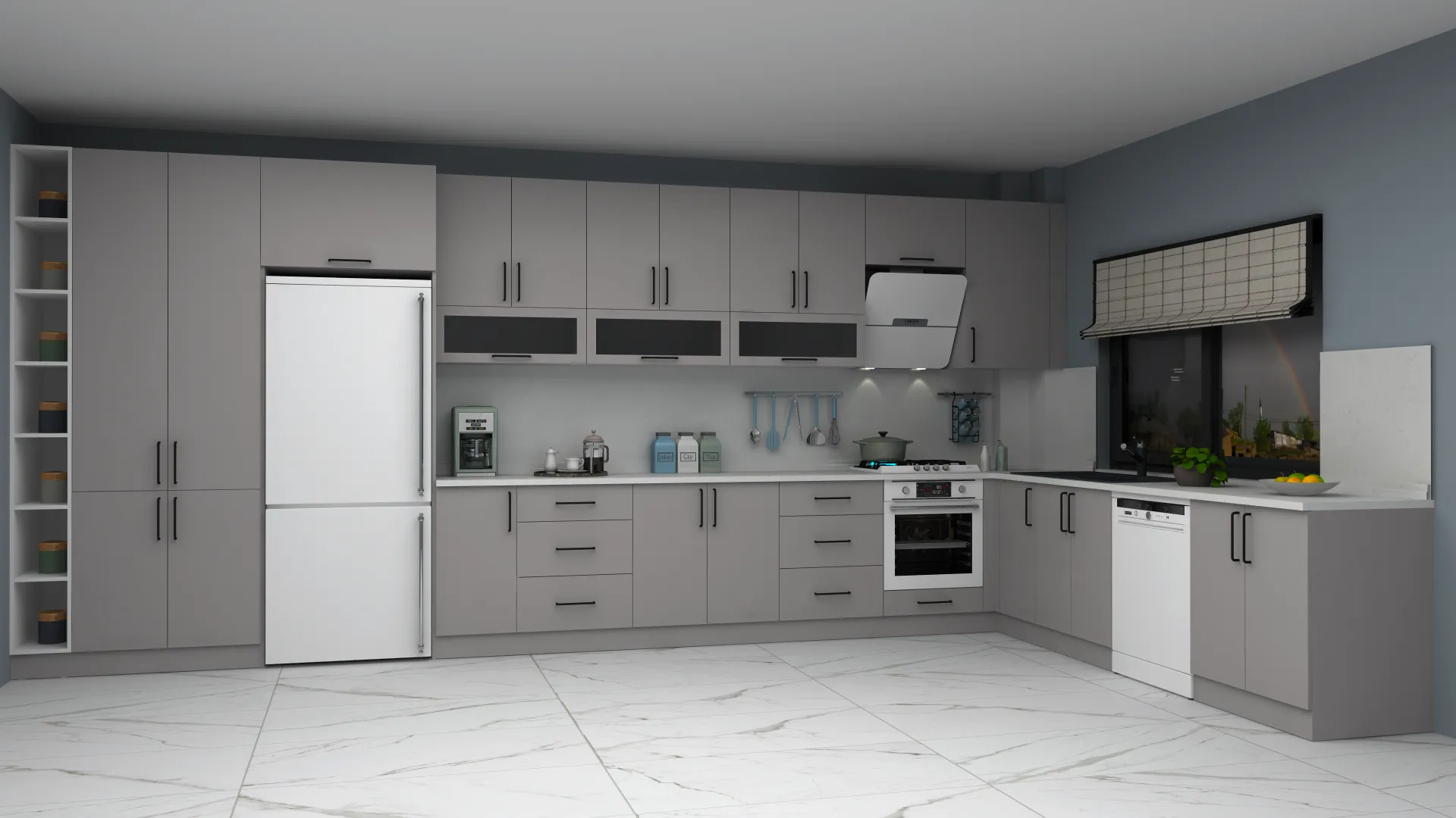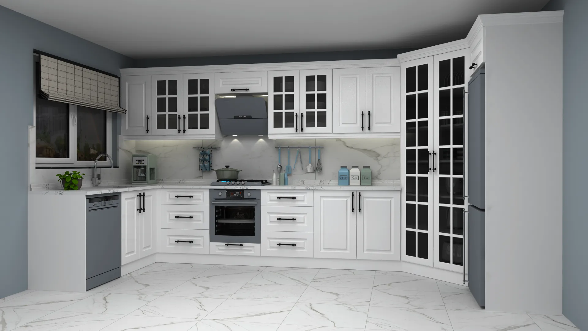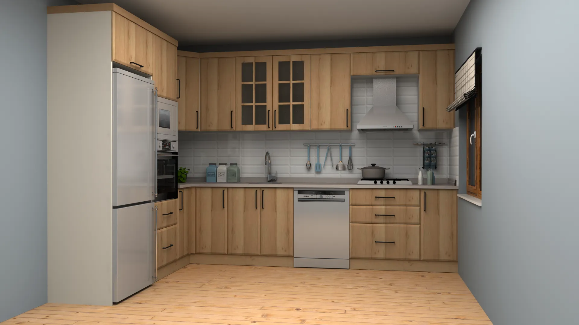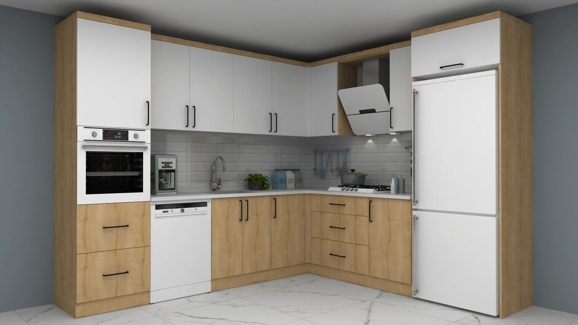 - 3D Modern L Mutfak Dolabı