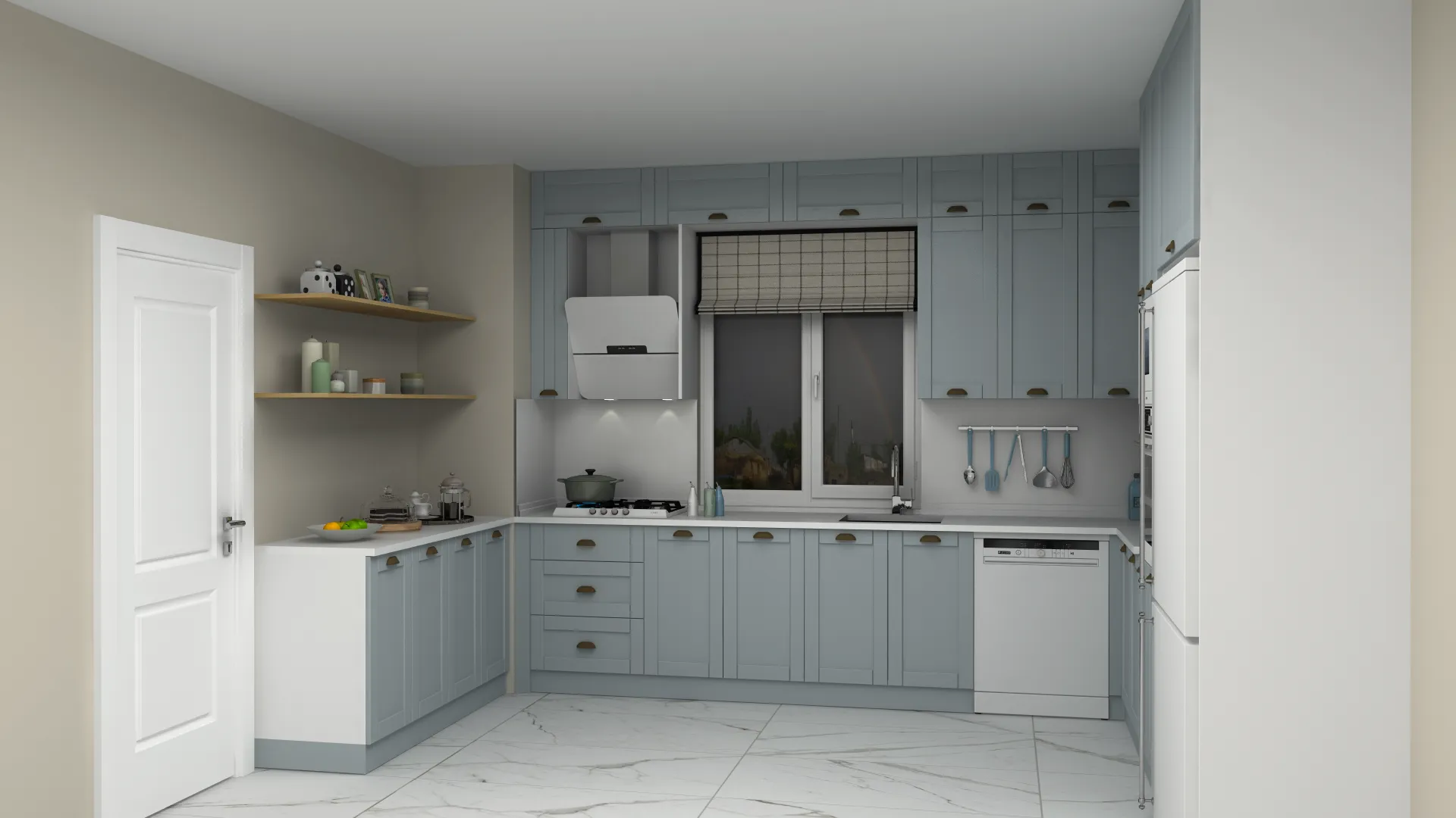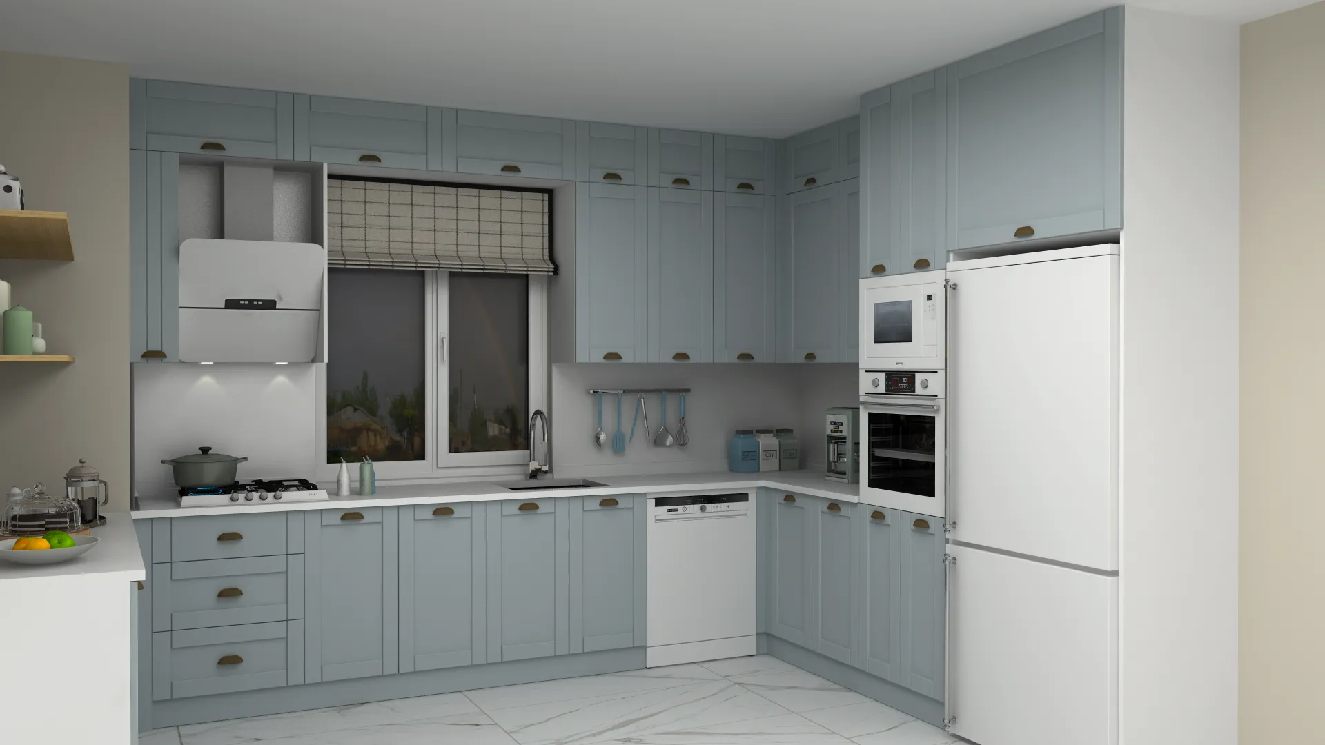 3D Country Lake Beyaz L Mutfak Dolabı