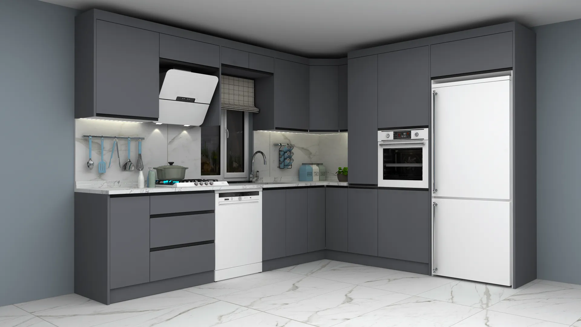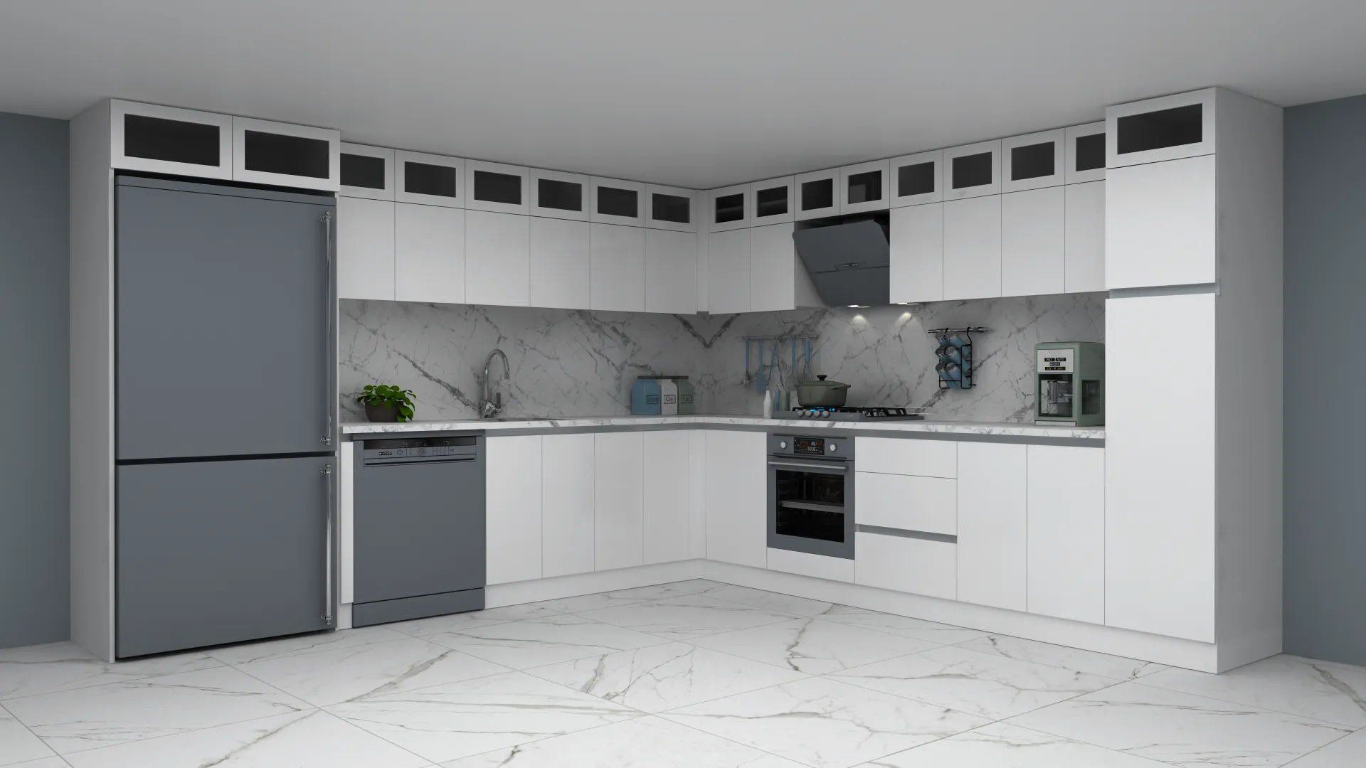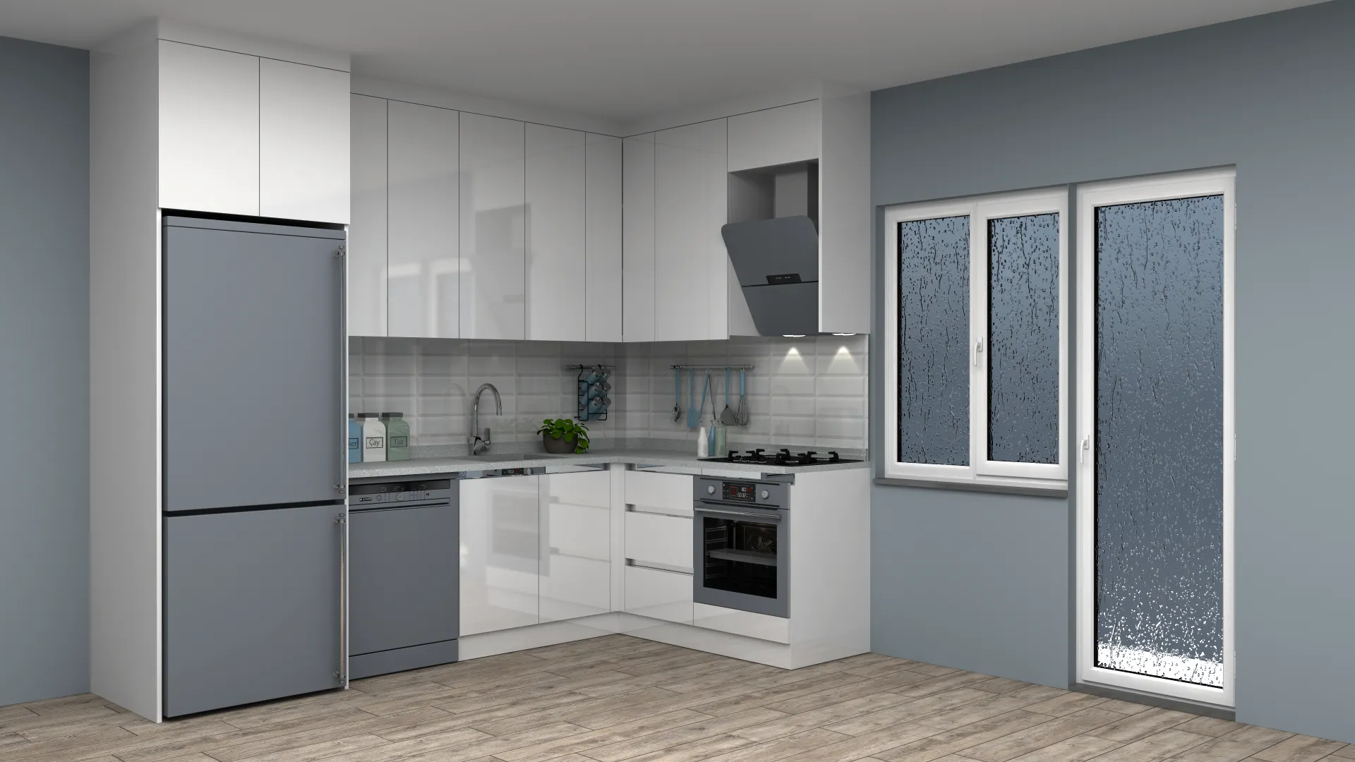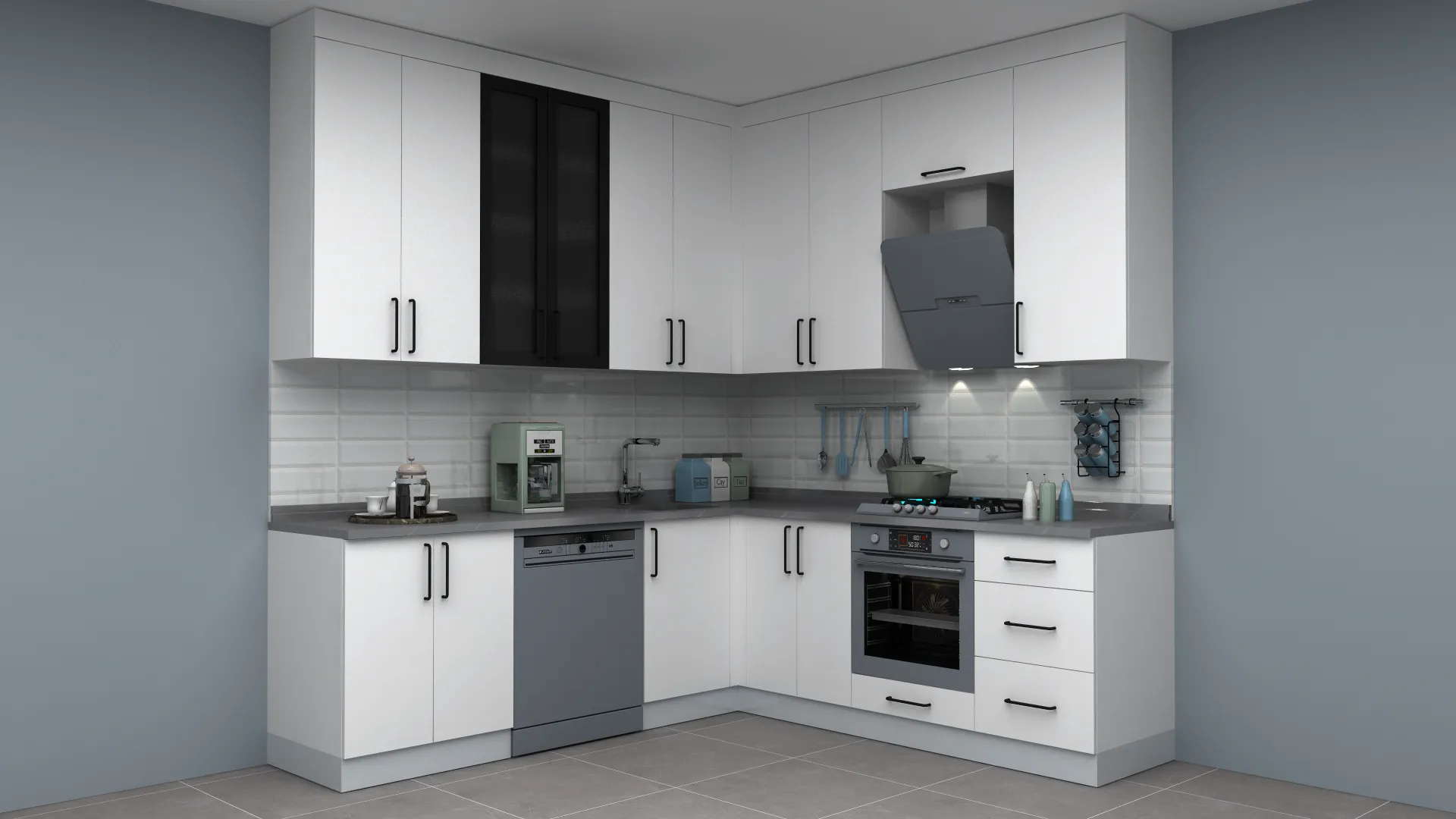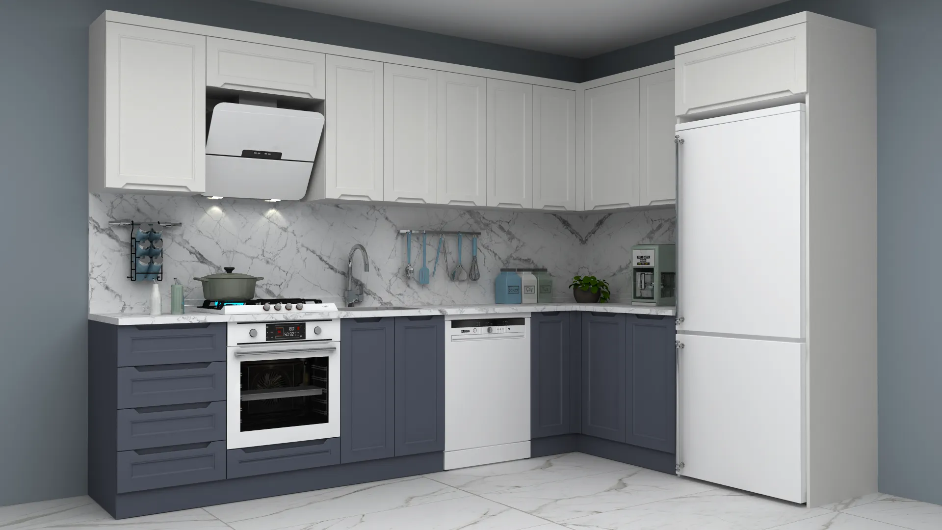 - 3D Modern Lake L Mutfak Dolabı