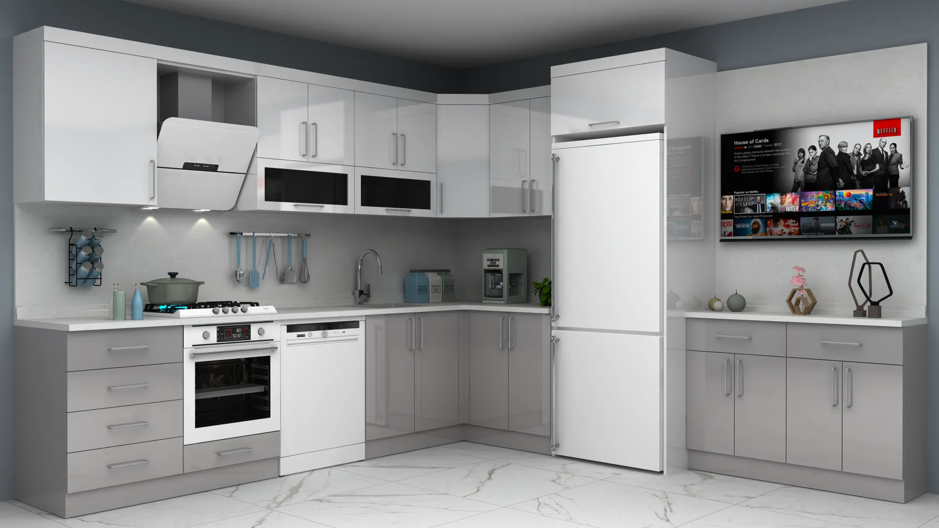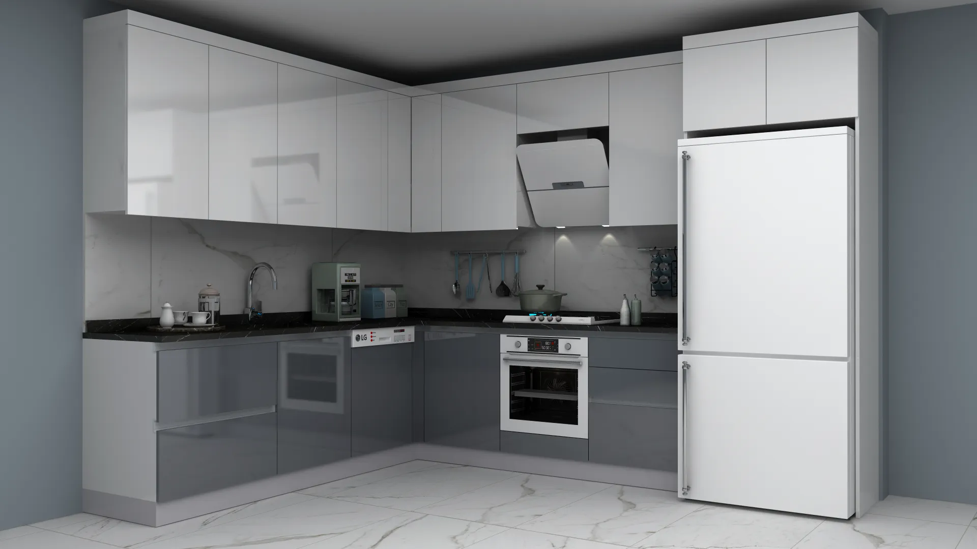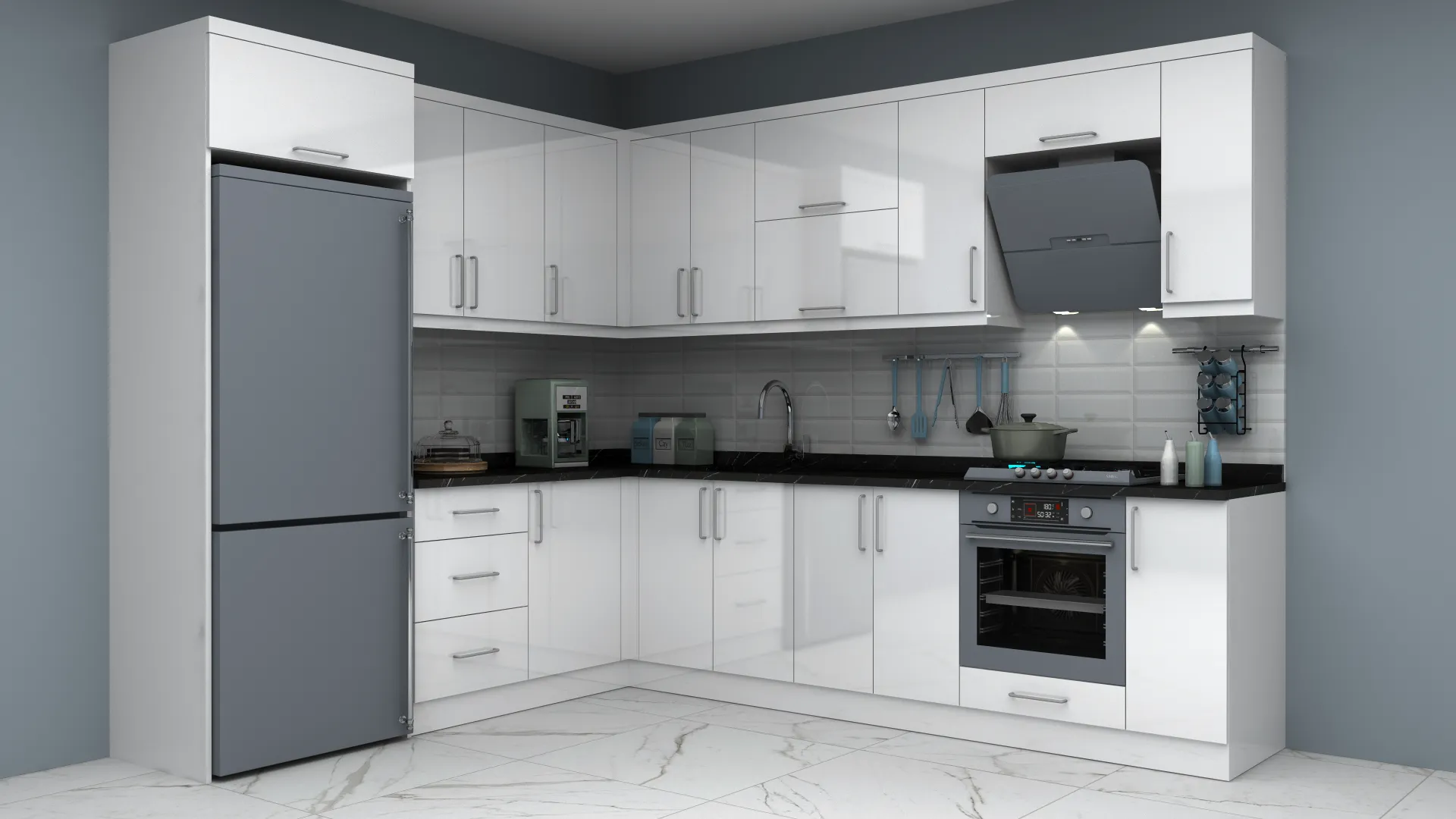 - 3D Modern High Gloss L Mutfak Dolabı