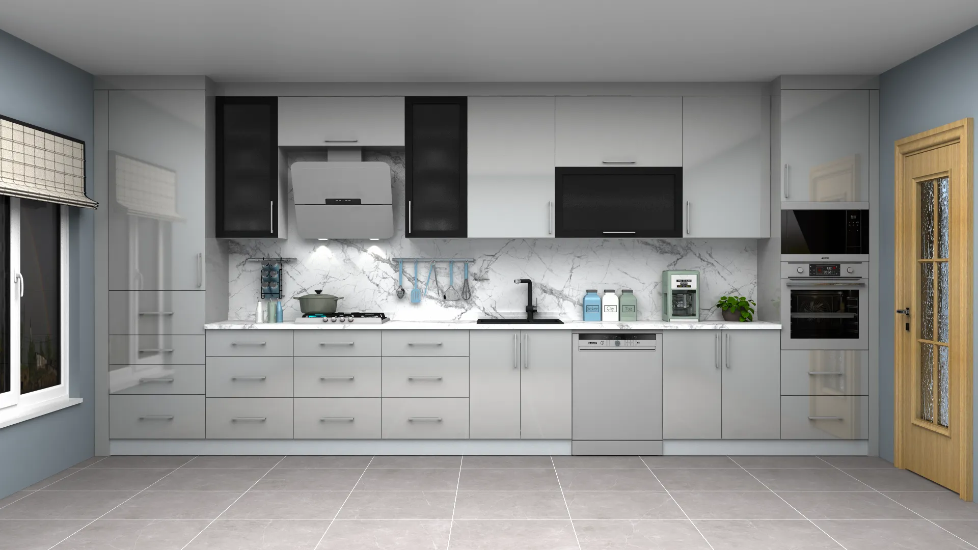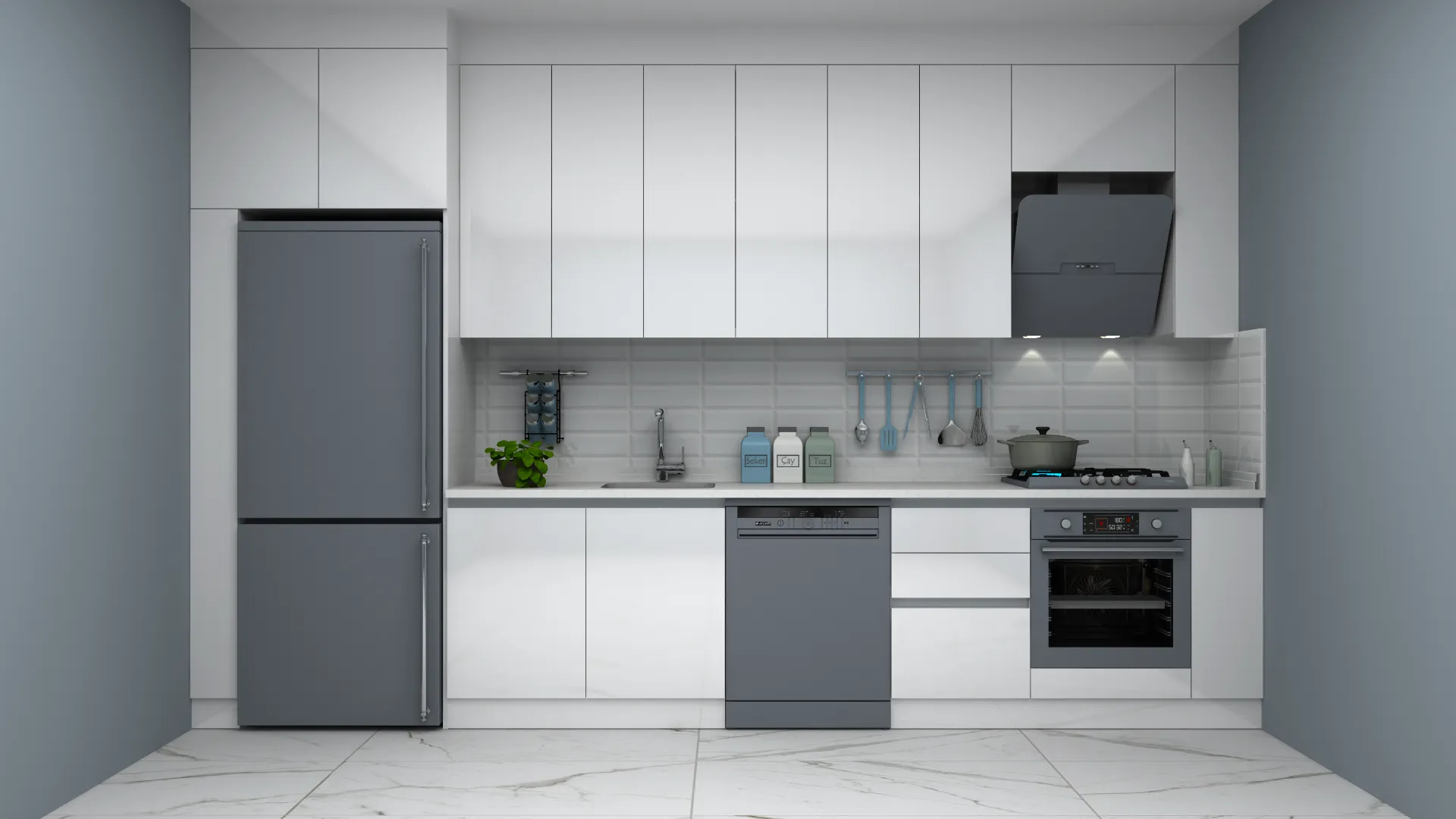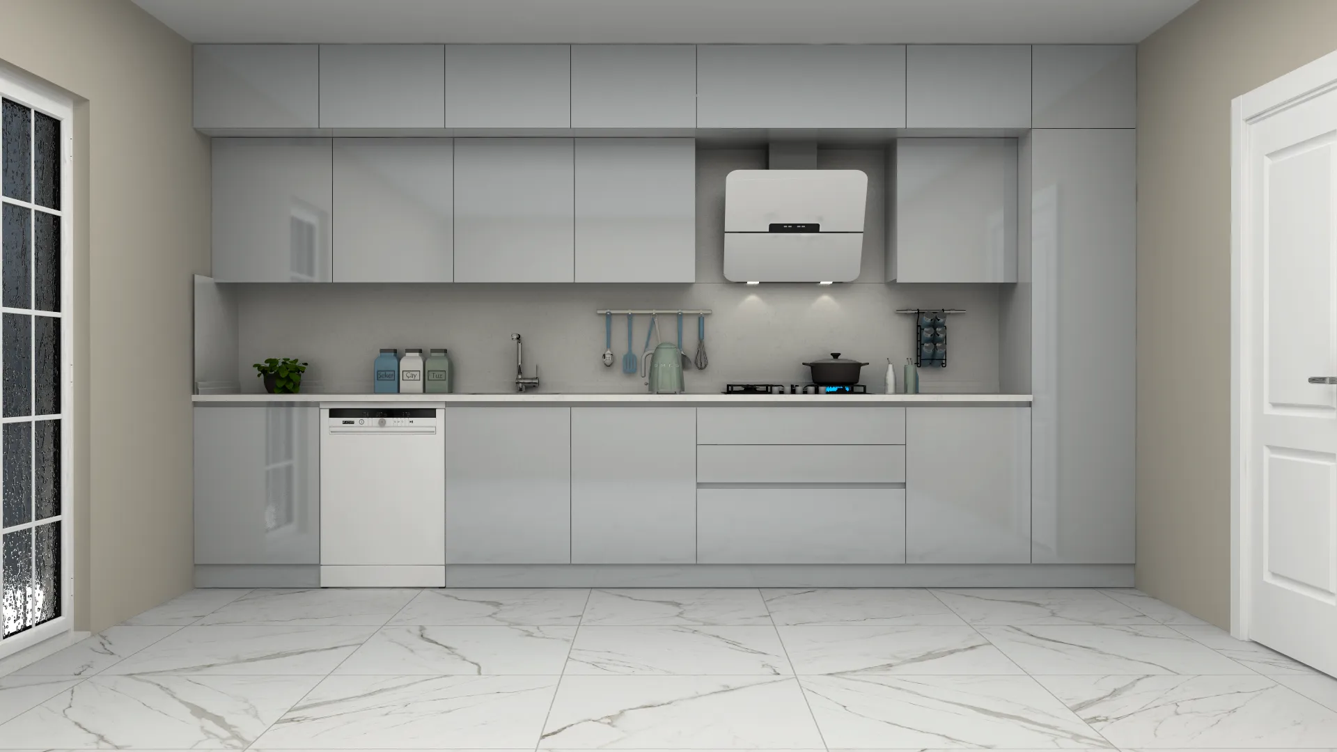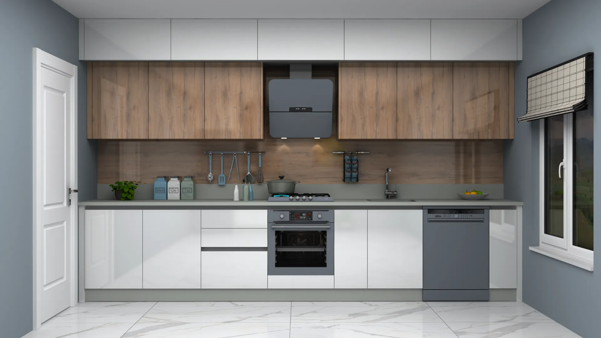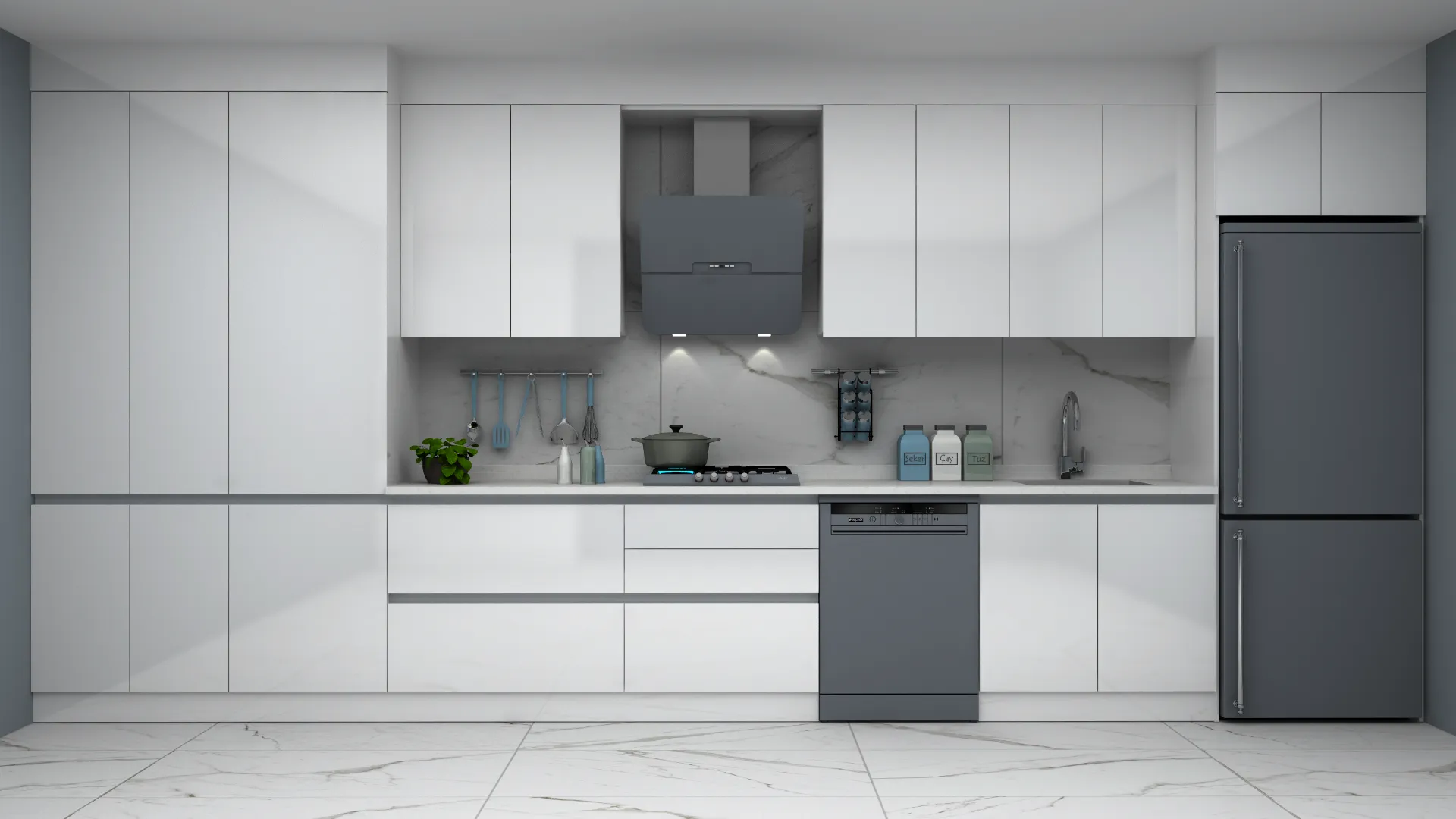 - 3D Modern Lake Düz Mutfak Dolabı