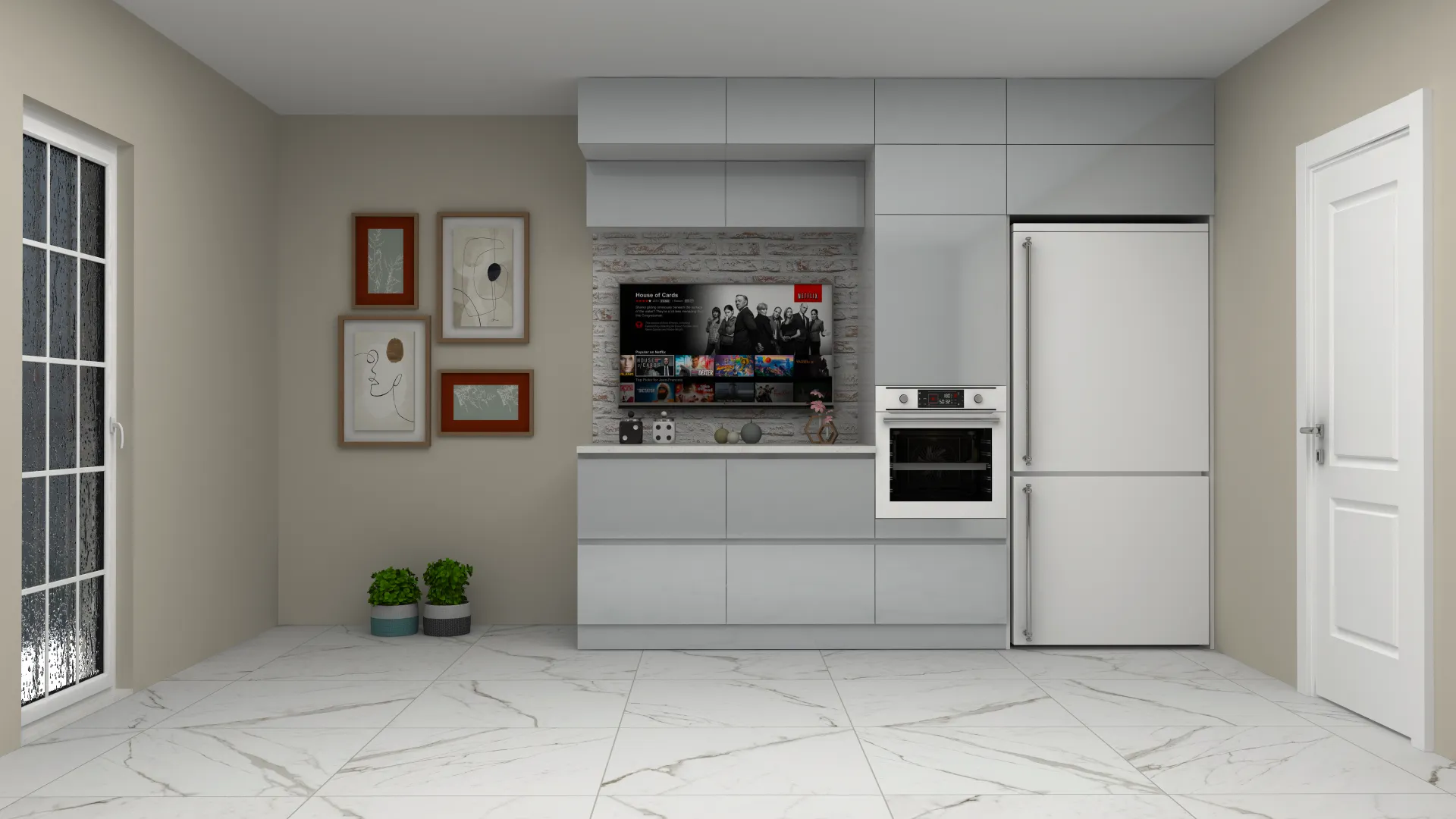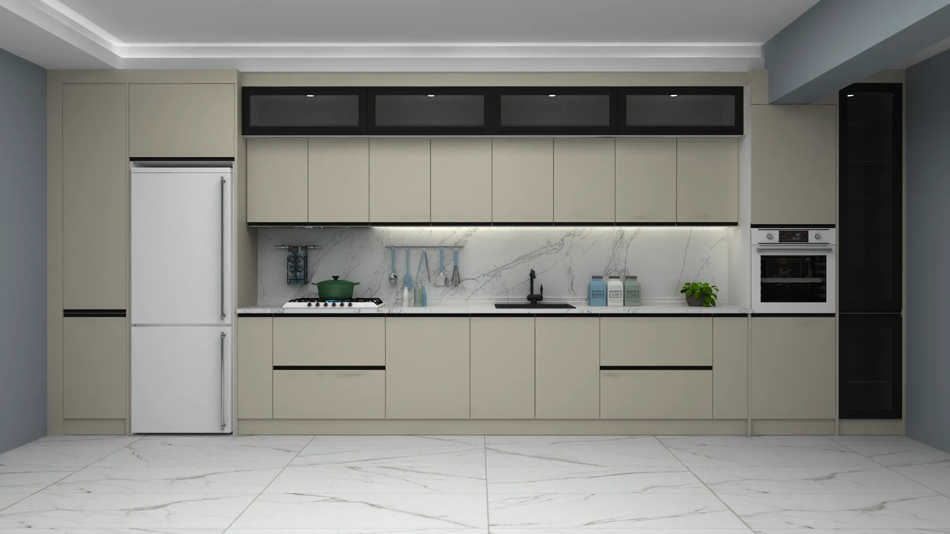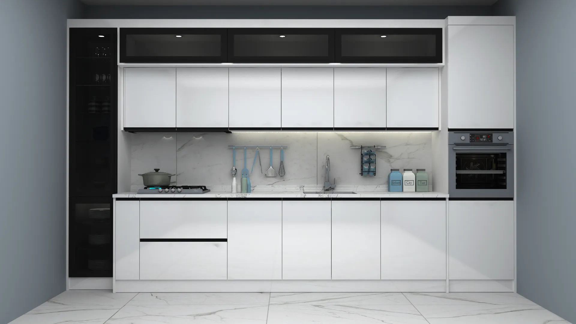 - 3D Modern Düz Mutfak Dolabı